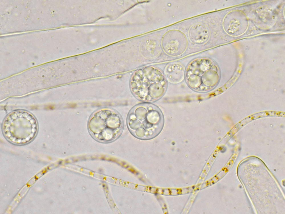 Sporen in Wasser, x1000