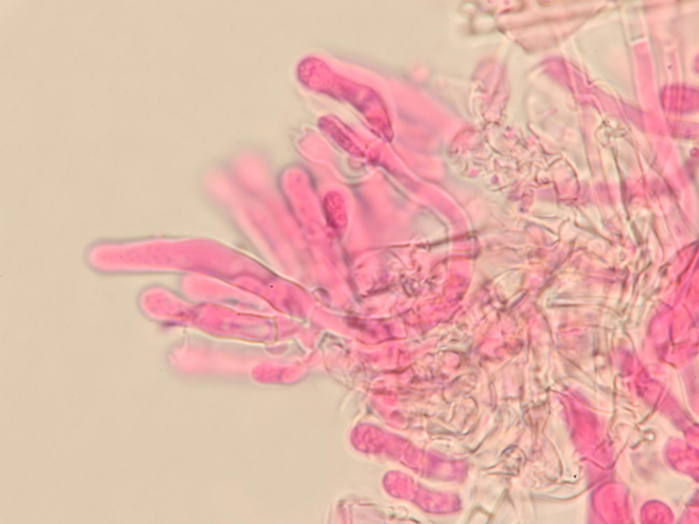 April 15, 2020 Alutaceodontia (Parmasto) Hjortstam & Ryvarden 2002 1000 × 750 7 Hymenium mit Leptozystide und Basidien in Phloxin, x1000 Gefällt mir Wird geladen …